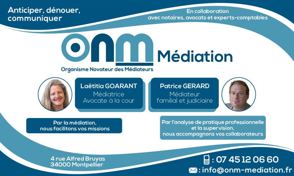 ORGANISME NOVATEUR DES MEDIATEUR SUR MONTPELLIER Tel :07.45.12.06.60